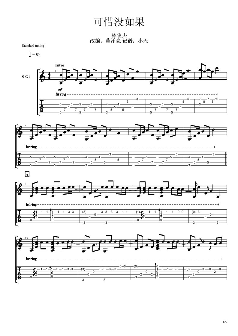 - 可惜没如果吉他谱-林俊杰-高清六线谱图片谱