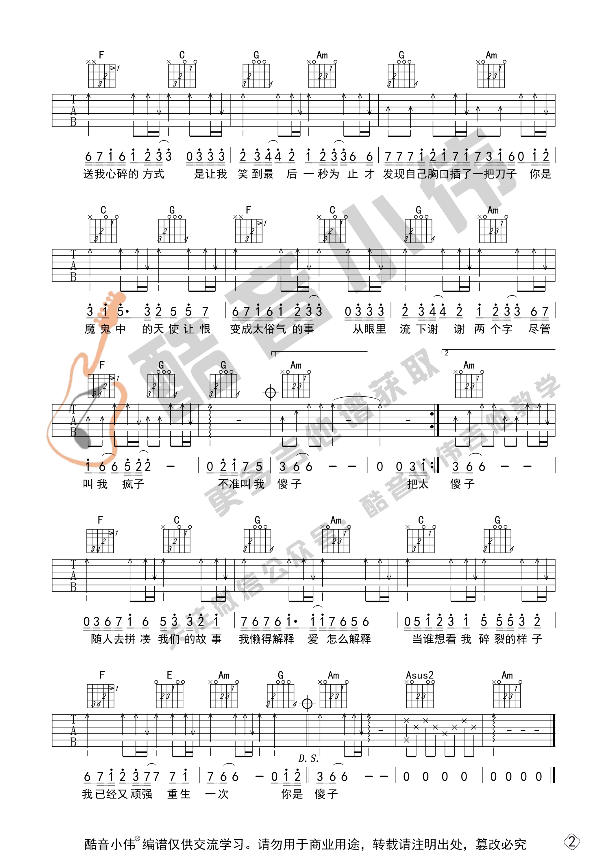 “魔鬼中的天使吉他谱,原版歌曲,简单C调弹唱教学,六线谱指弹简谱2张图” 的相关文章