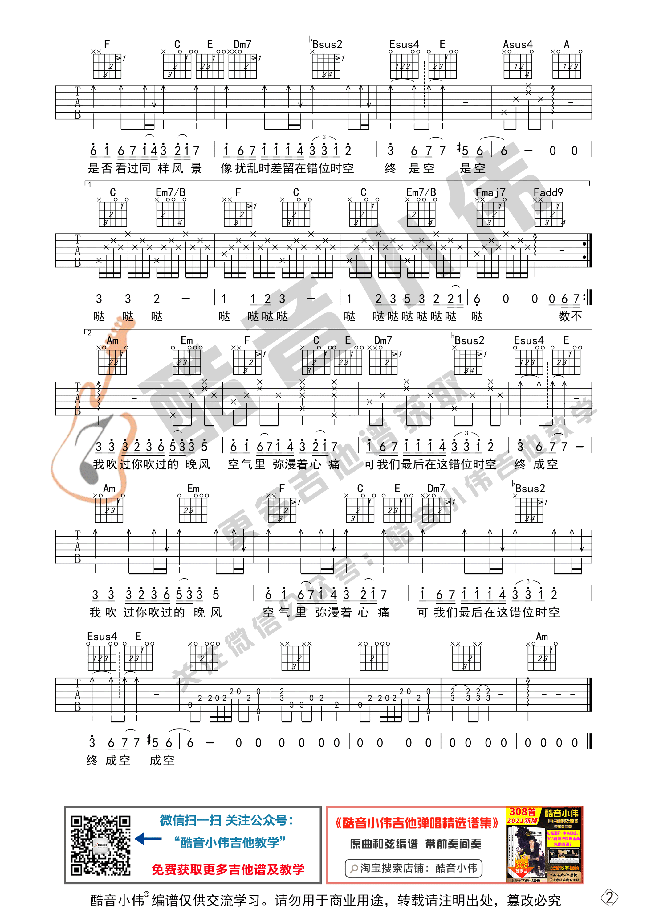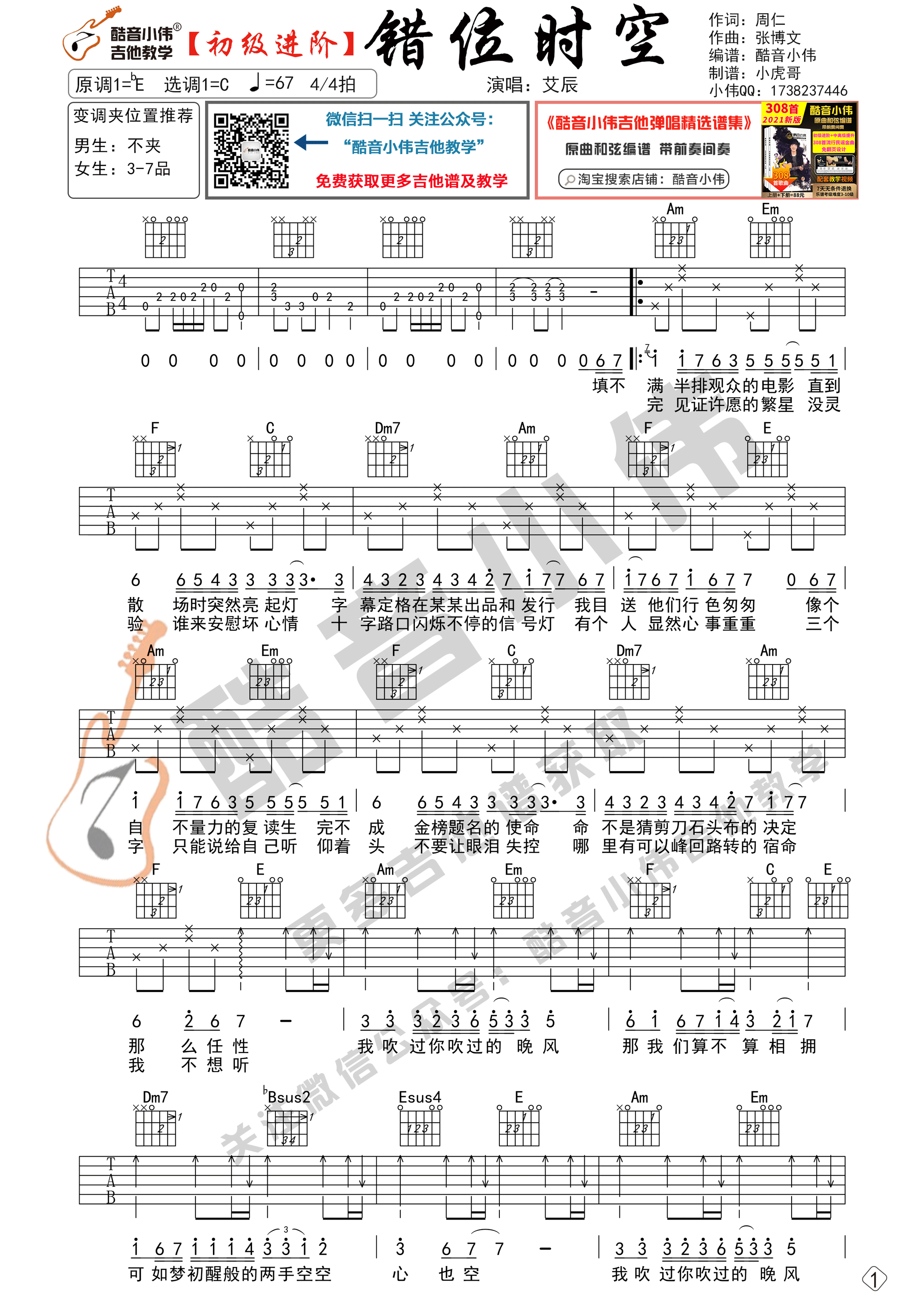 “错位时空吉他谱,原版歌曲,简单C调弹唱教学,六线谱指弹简谱2张图” 的相关文章