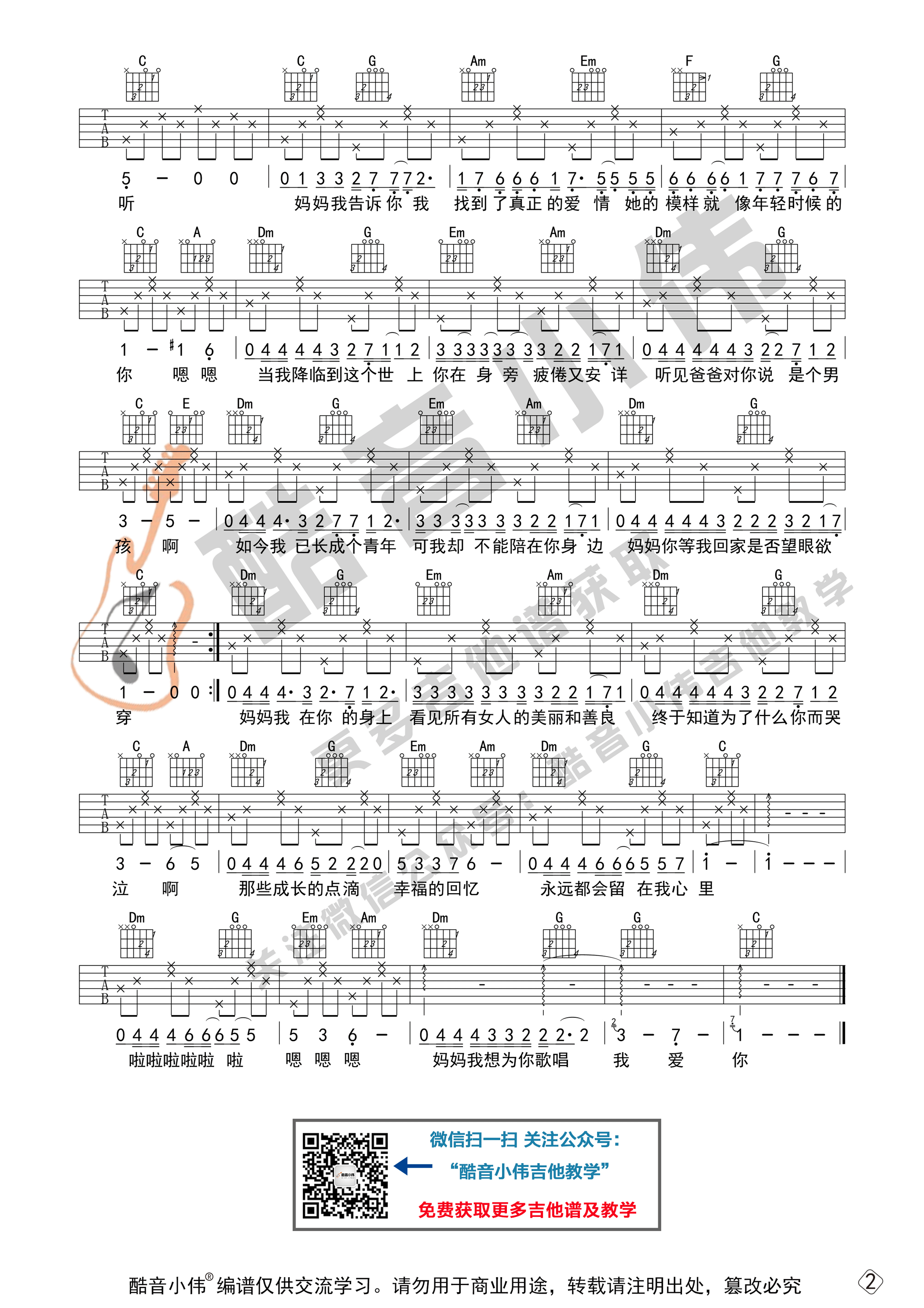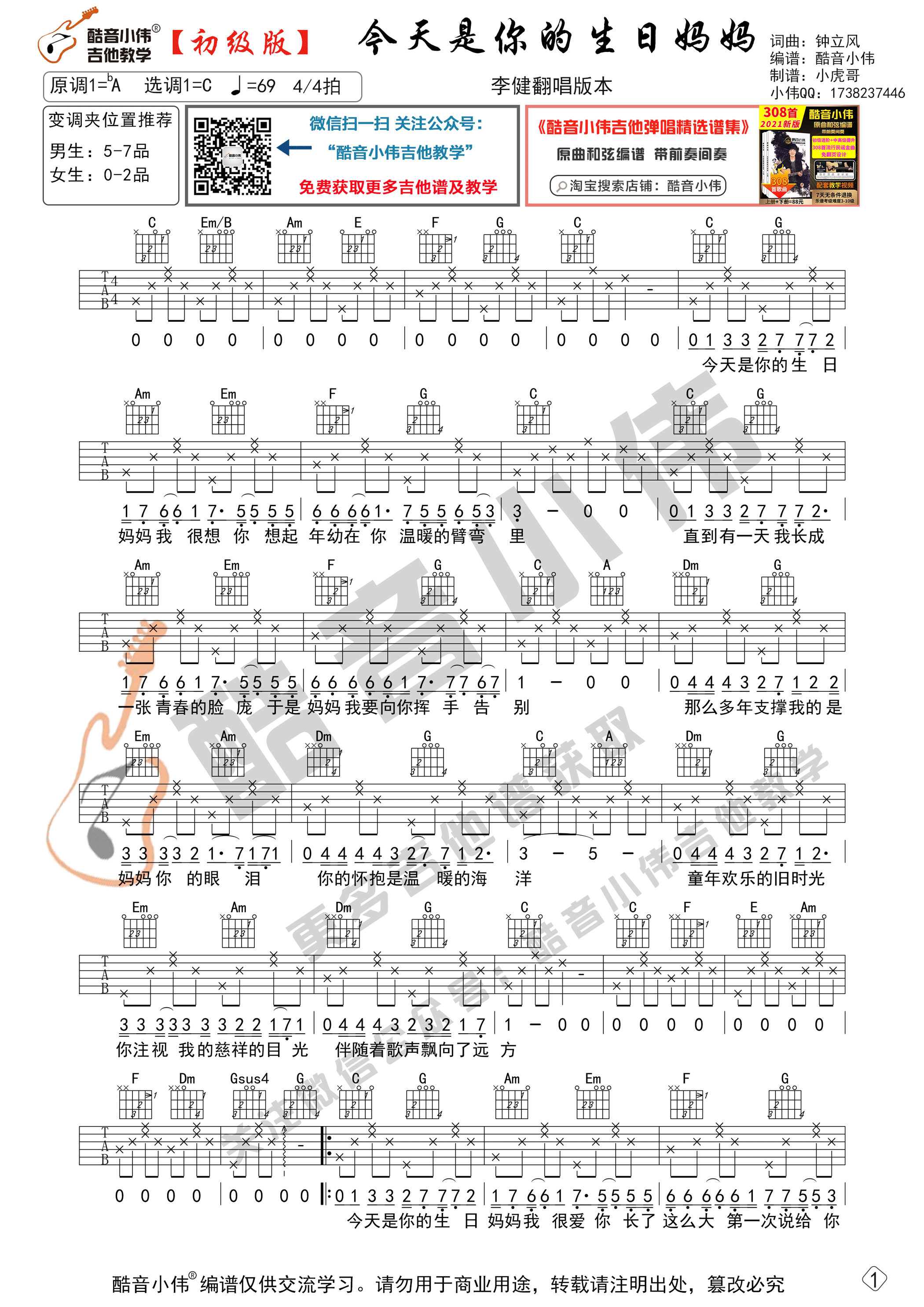 “今天是你的生日,妈妈吉他谱,原版歌曲,简单C调弹唱教学,六线谱指弹简谱2张图” 的相关文章