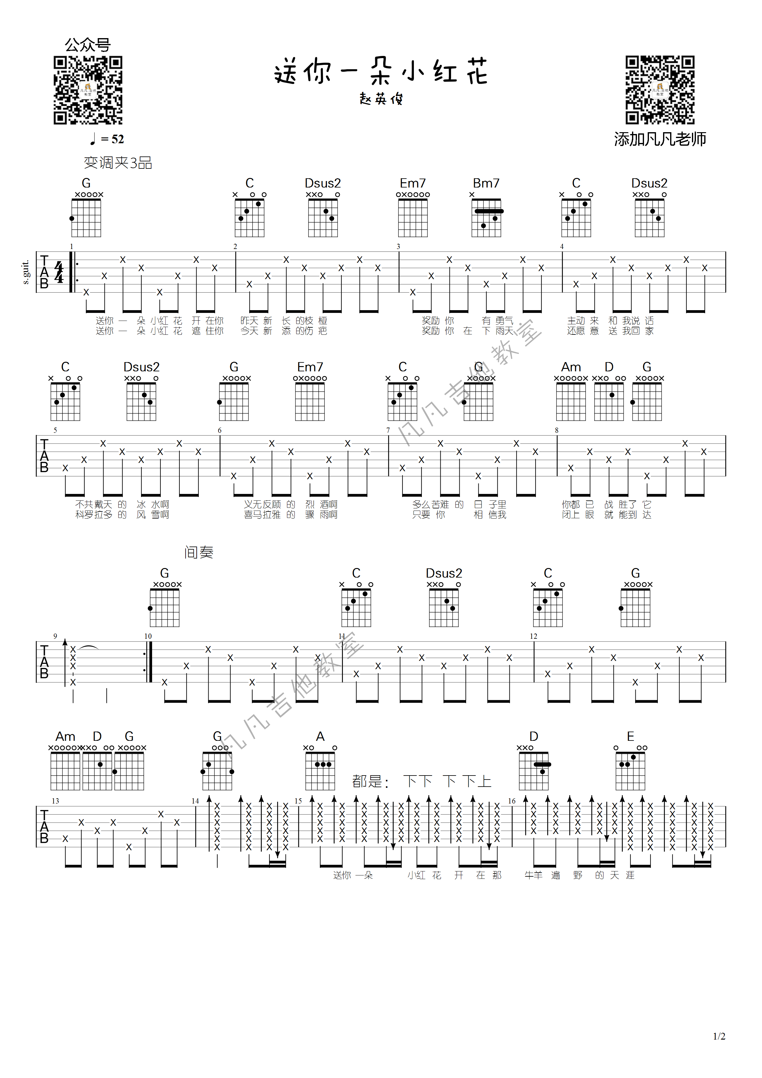 《送你一朵小红花吉他谱》_赵英俊_G调 图一